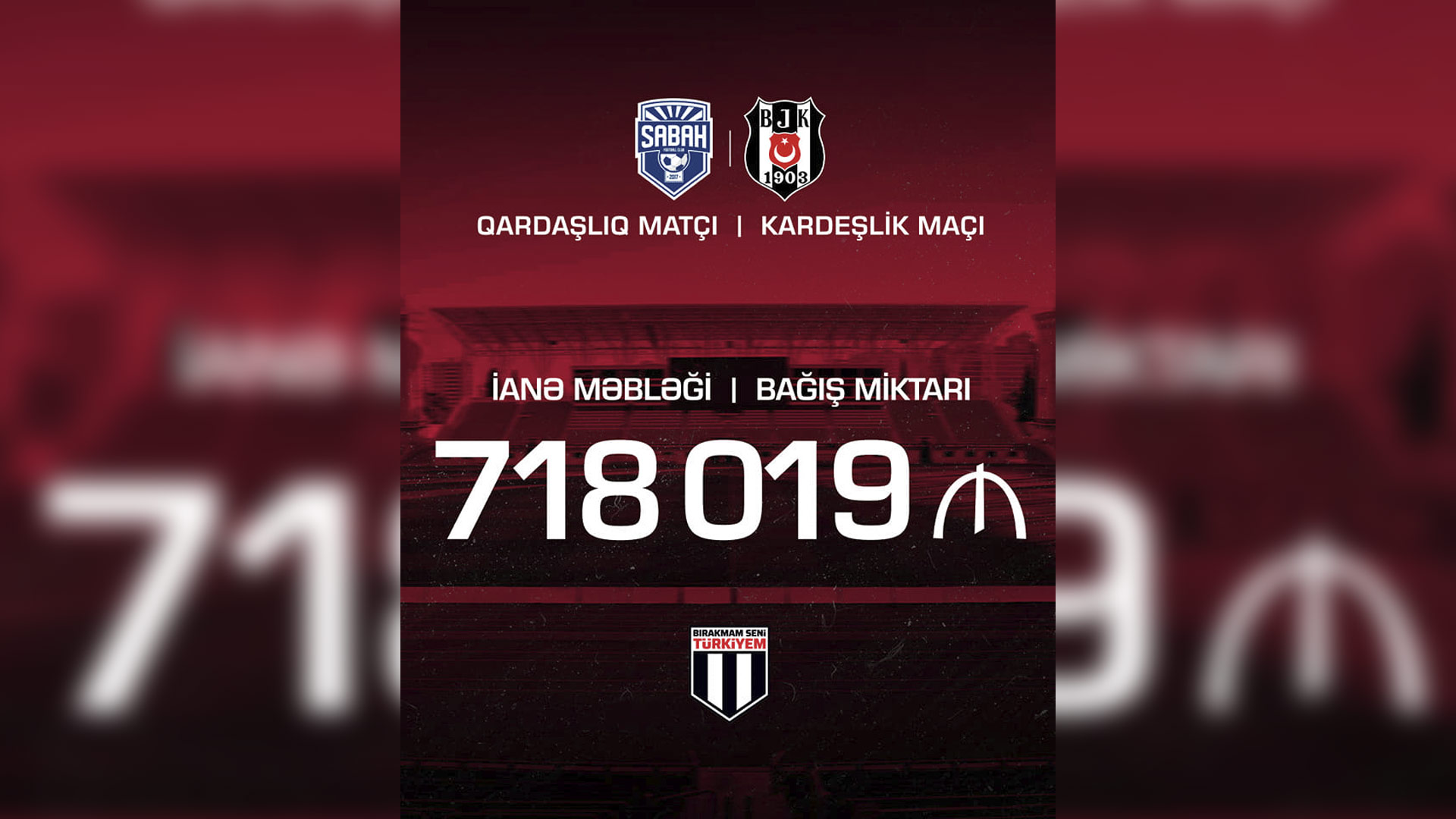 Məbləğ ən qısa zamanda “Beşiktaş” klubu tərəfindən yaradılmış “Bırakmam seni Türkiyem” yardım kampaniyasının hesabına köçürüləcək.