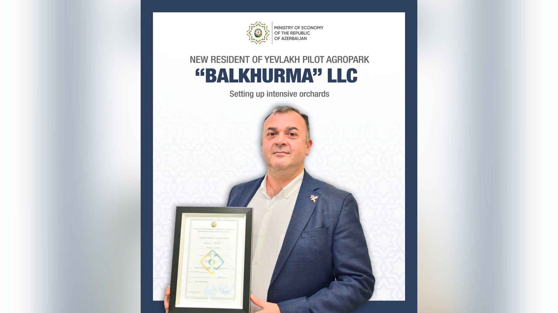 Private entrepreneur Maharram Asgarov and Balkhurma LLC have acquired residency in the Yevlakh Pilot Agropark. The entrepreneurs will establish intensive orchards in an area of 61.1 hectares, with an #investment volume of 640,000 ₼. This initiative will create permanent jobs for… pic.twitter.com/RxESeiaSfV