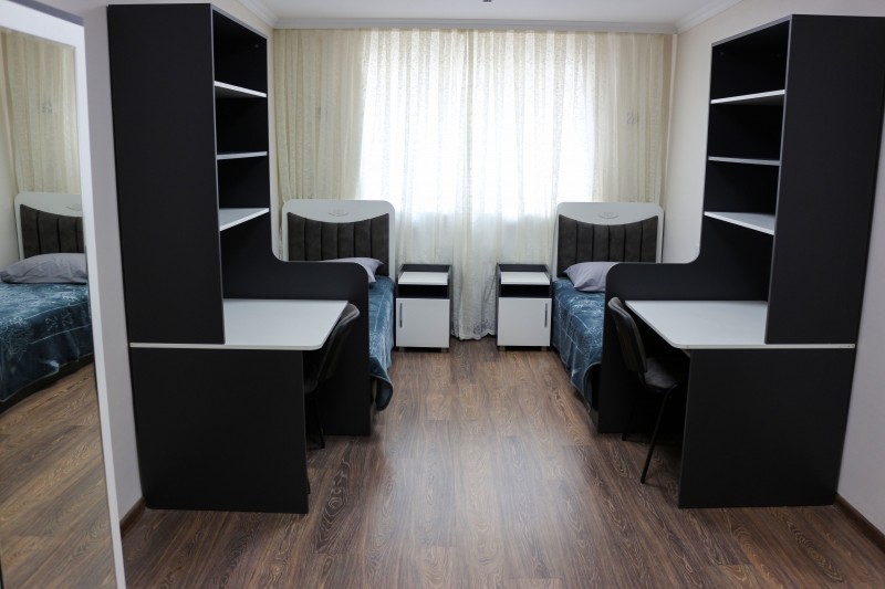 “Yataqxanadakı 77 otağın hər biri 4 nəfərlikdir. Bütün mərtəbələrdə istirahət guşəsi və dərs çalışma otaqları var. Əlavə olaraq hər iki yataqxanada yaxınlarını görmək üçün gələn valideynlər üçün qonaq otaqları mövcuddur.Binalarda zəngin kitabxana, akt və fitnes zalları, iaşə və məişət xidməti fəaliyyət göstərir. Hər iki binada bufet və gündə 3 dəfə zəngin çeşidli qidalarla tələbələrə xidmət edən yeməkxanalar mövcuddur. Yataqxanalarda camaşırxana, dərzi otaqları fəaliyyət göstərir. Ümumi işlək yerlər və tələbə otaqları hər gün təmizlik işçiləri tərəfindən təmizlənir”.
