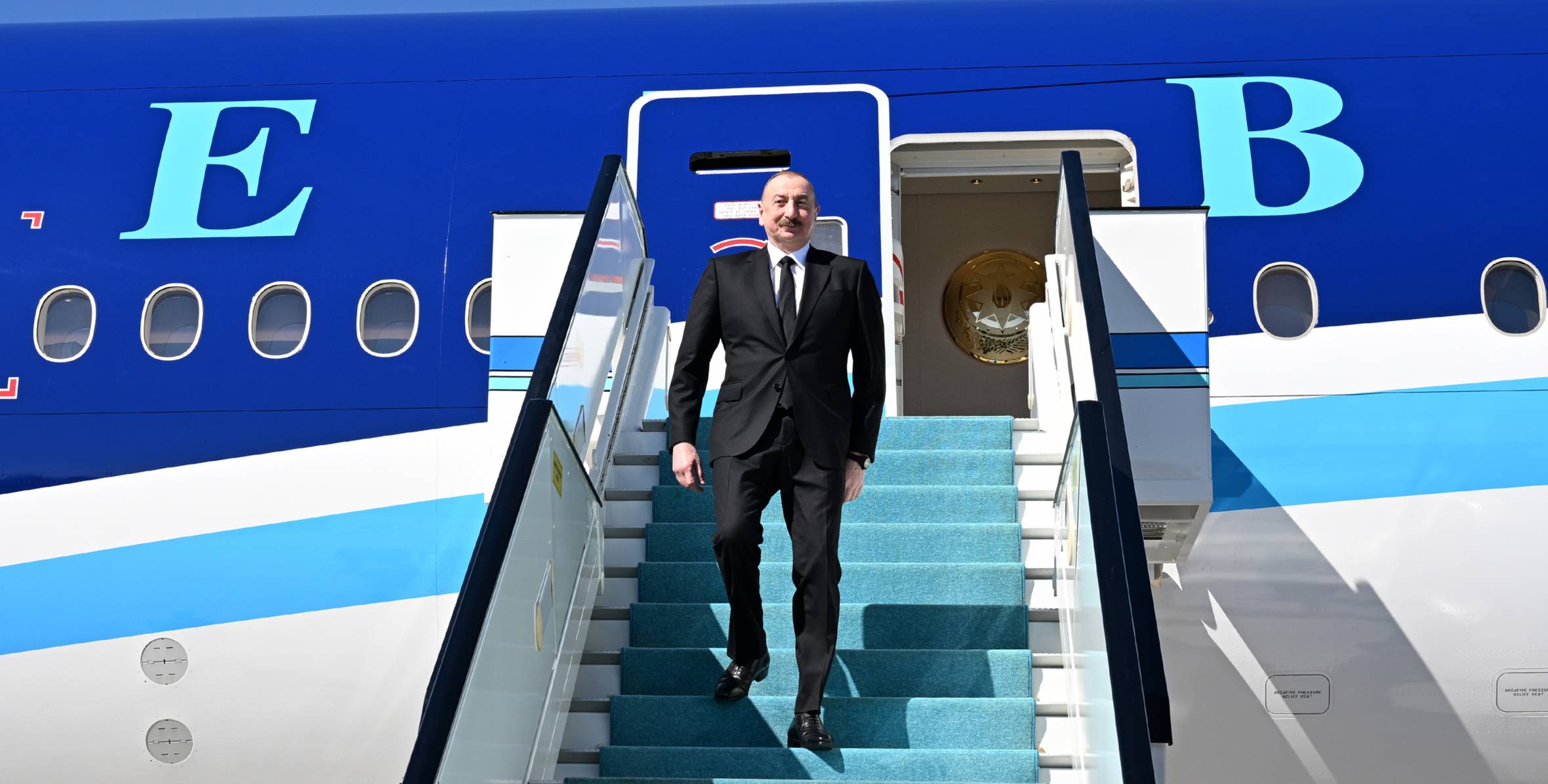 Dövlətimizin başçısını Türkiyənin maliyyə naziri Mehmet Şimşek və digər rəsmi şəxslər qarşıladılar.