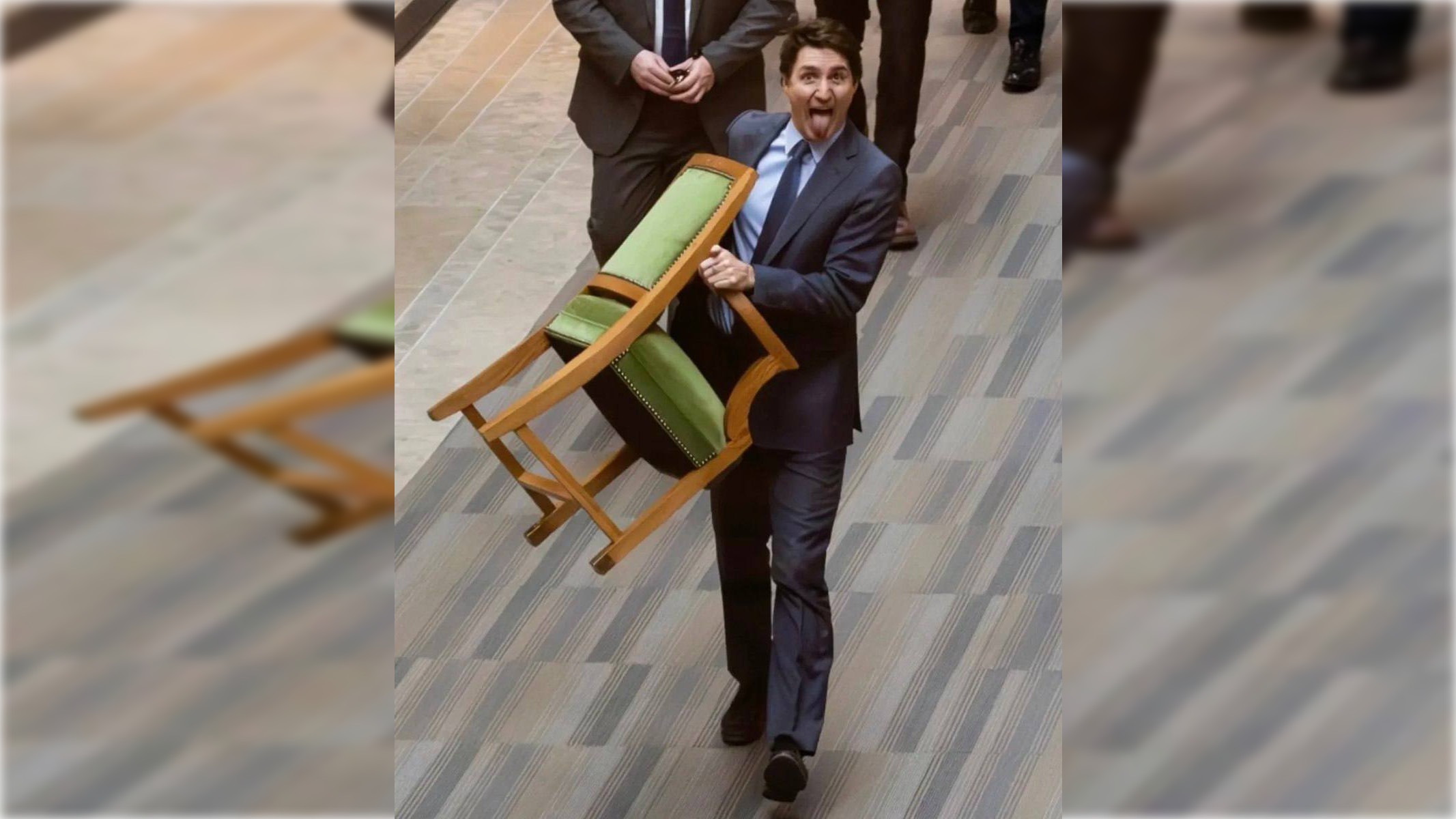 Kanadanın sabiq Baş naziri Castin Trüdo parlamentin İcmalar Palatasını tərk edərkən kreslosunu da özü ilə aparıb.