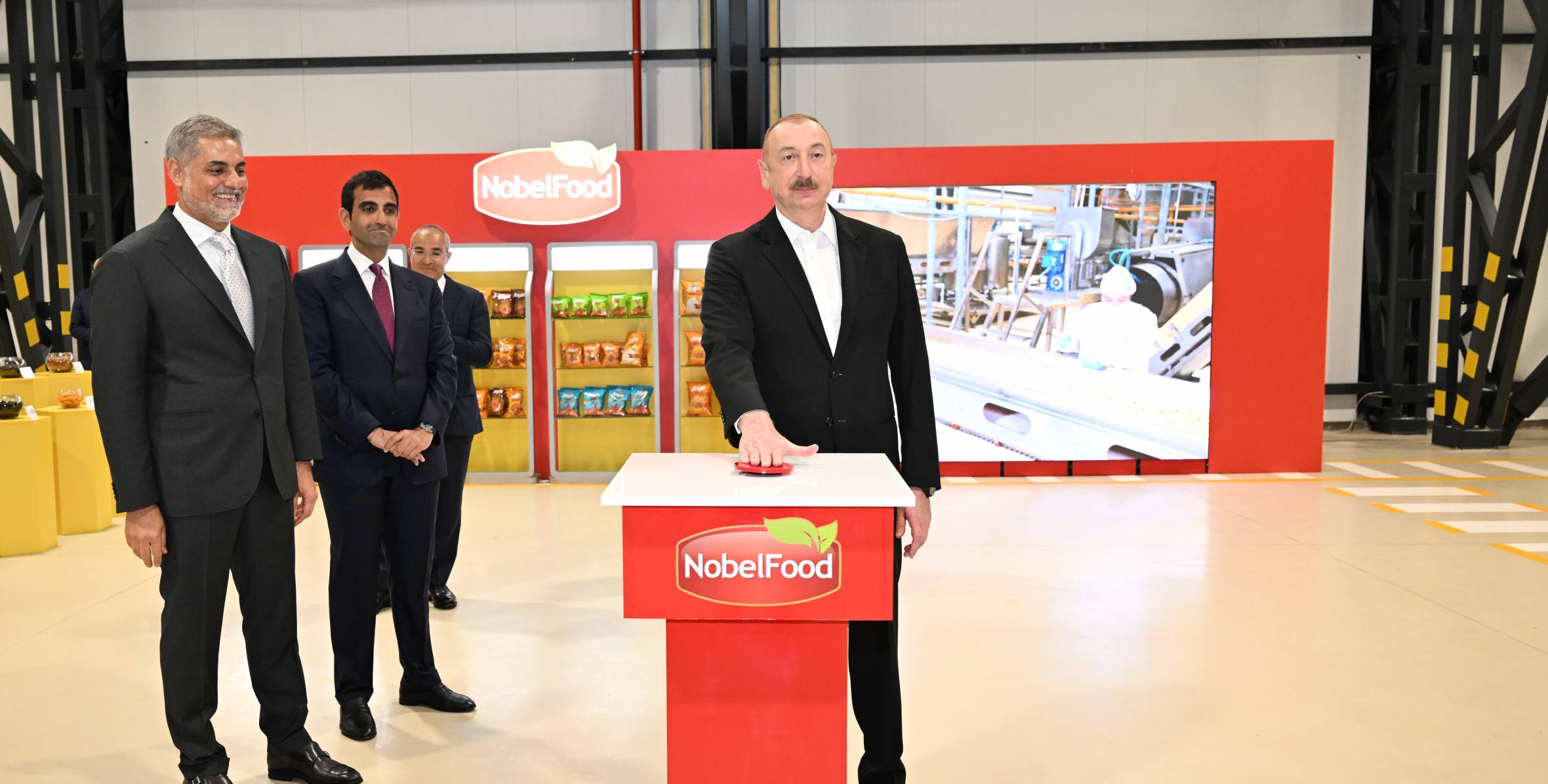 Azərbaycan Prezidenti İlham Əliyev Bakıda “Nobel Food İndustry” MMC-nin müxtəlif növ və çeşiddə qəlyanaltı məhsullarının istehsalı zavodunun açılışında iştirak edib.